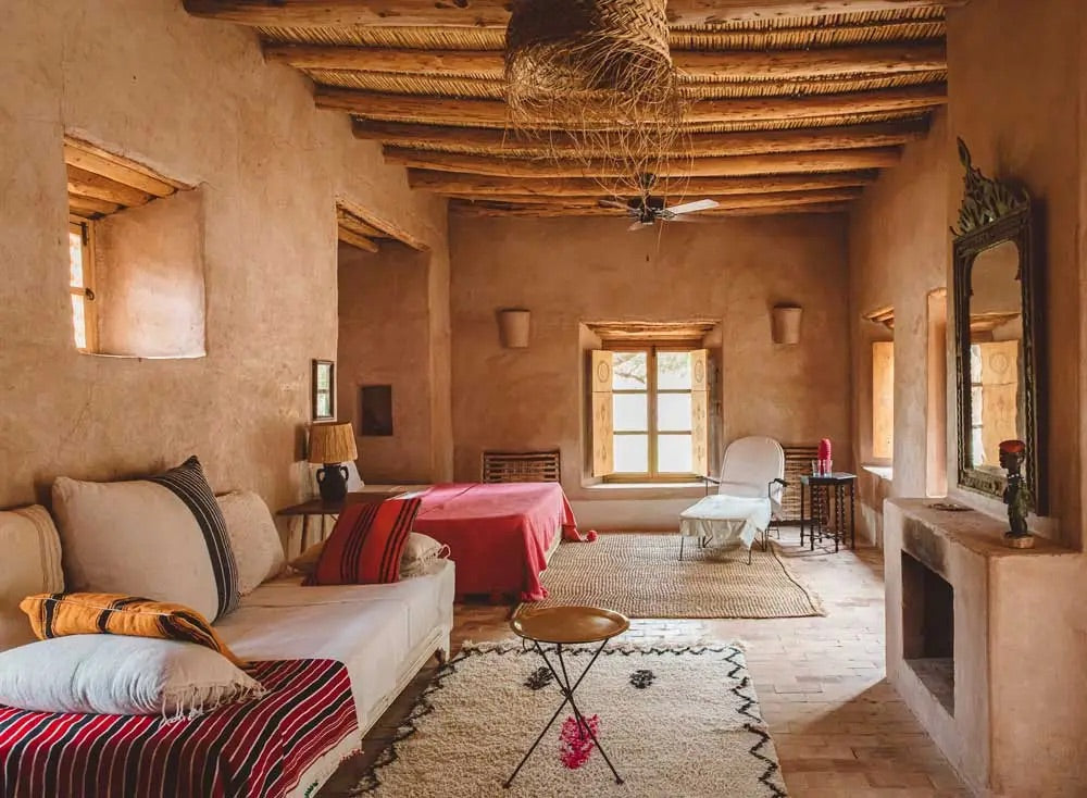 Berber Lodge is a fusion of love and local heritage, crafted by Romain Michel Meniere and his Studio KO architect partners. Embracing traditional Berber architecture and culture, this retreat features structures built from the earth of its olive gardens, adorned with locally sourced materials and a blend of vintage and artisan furnishings.