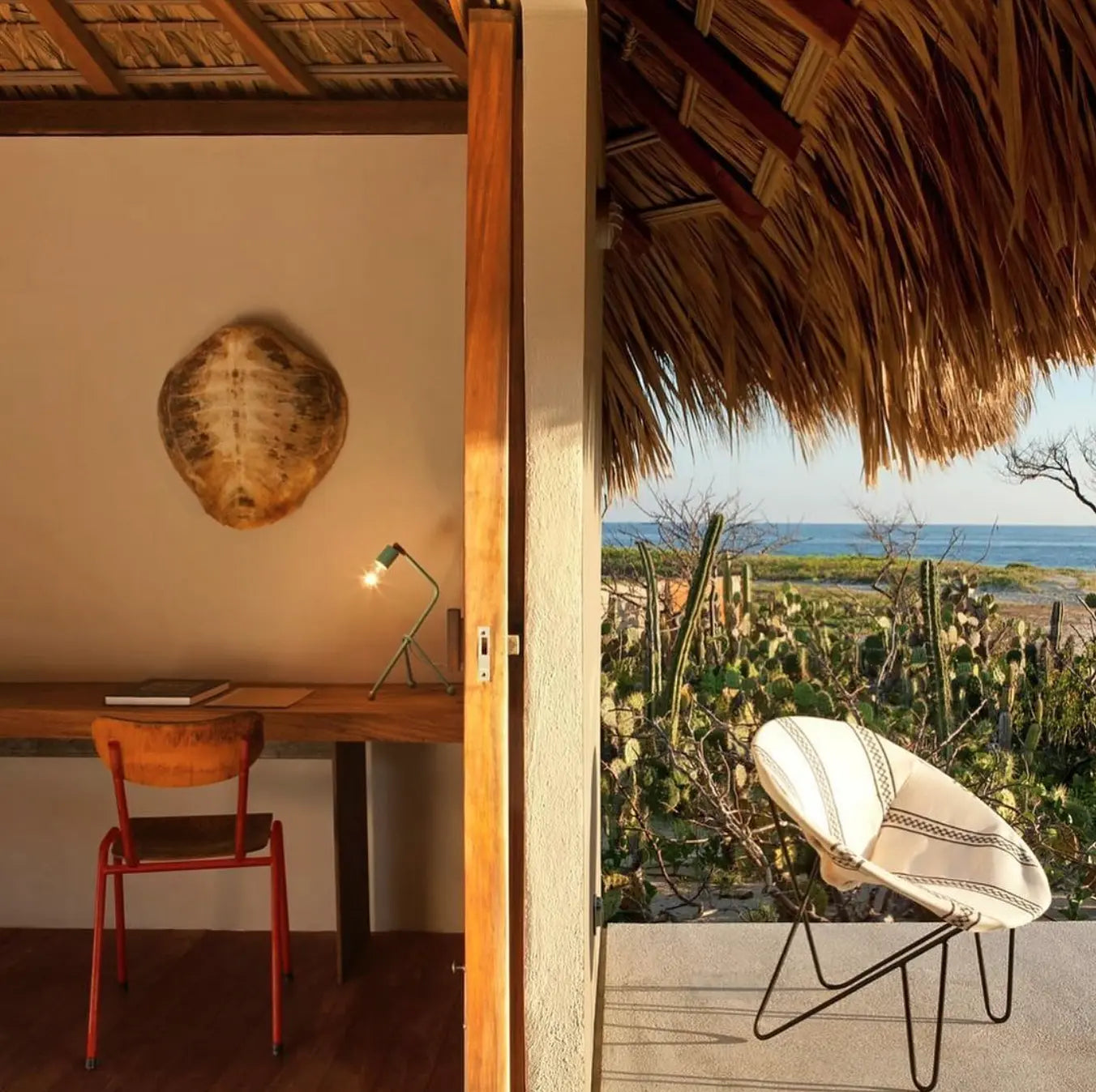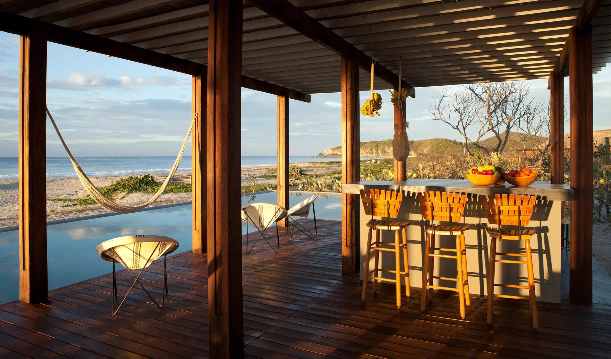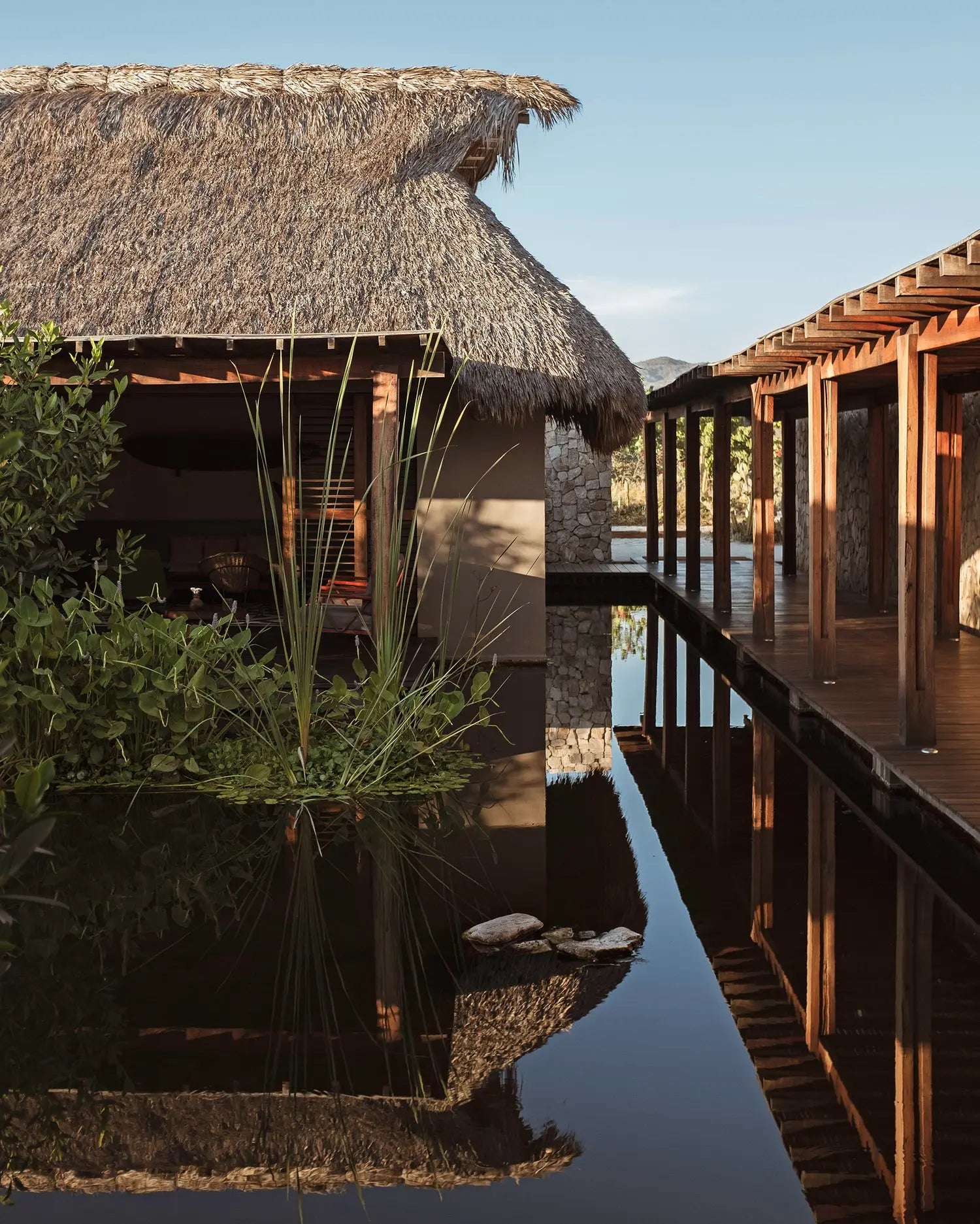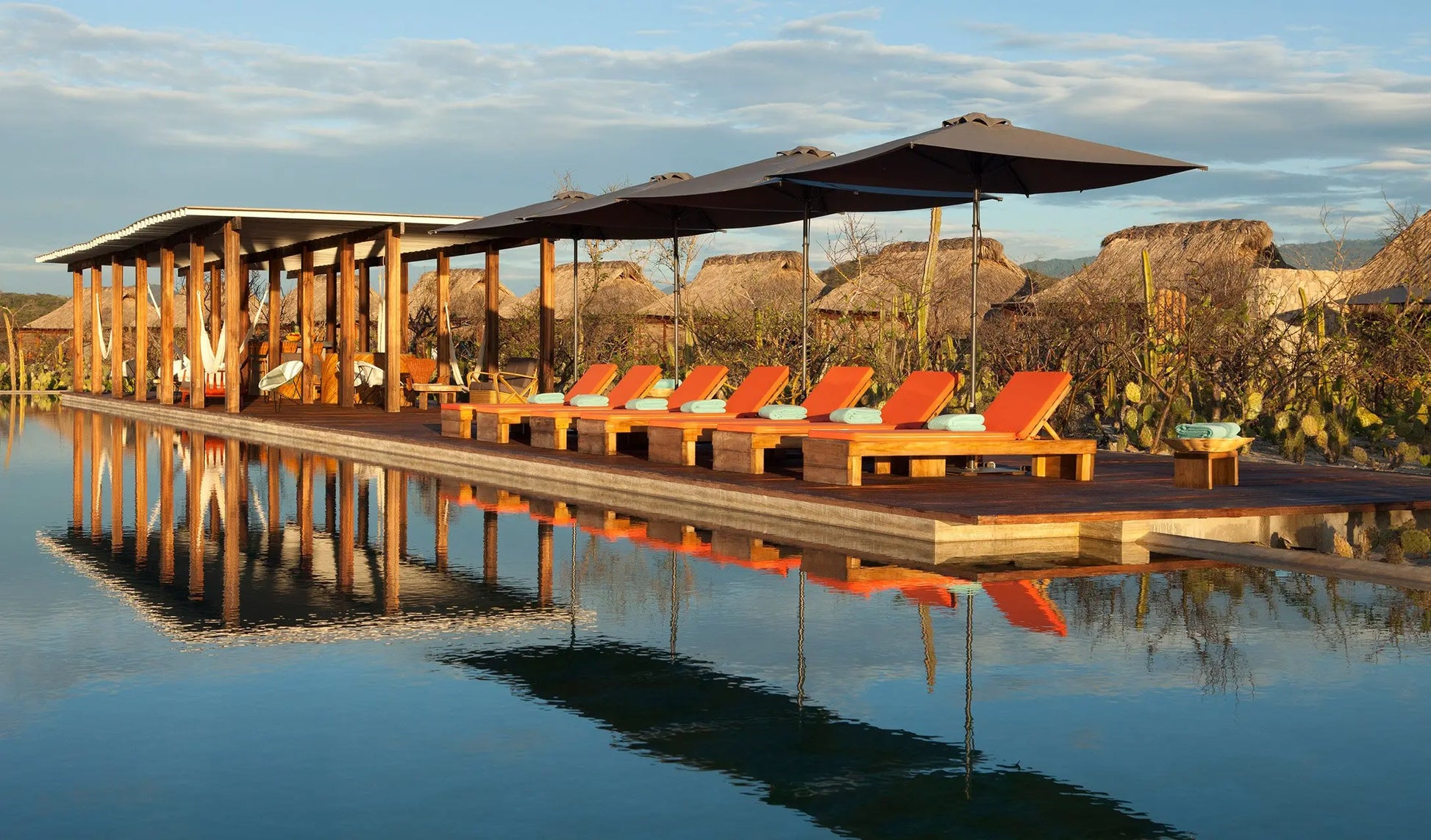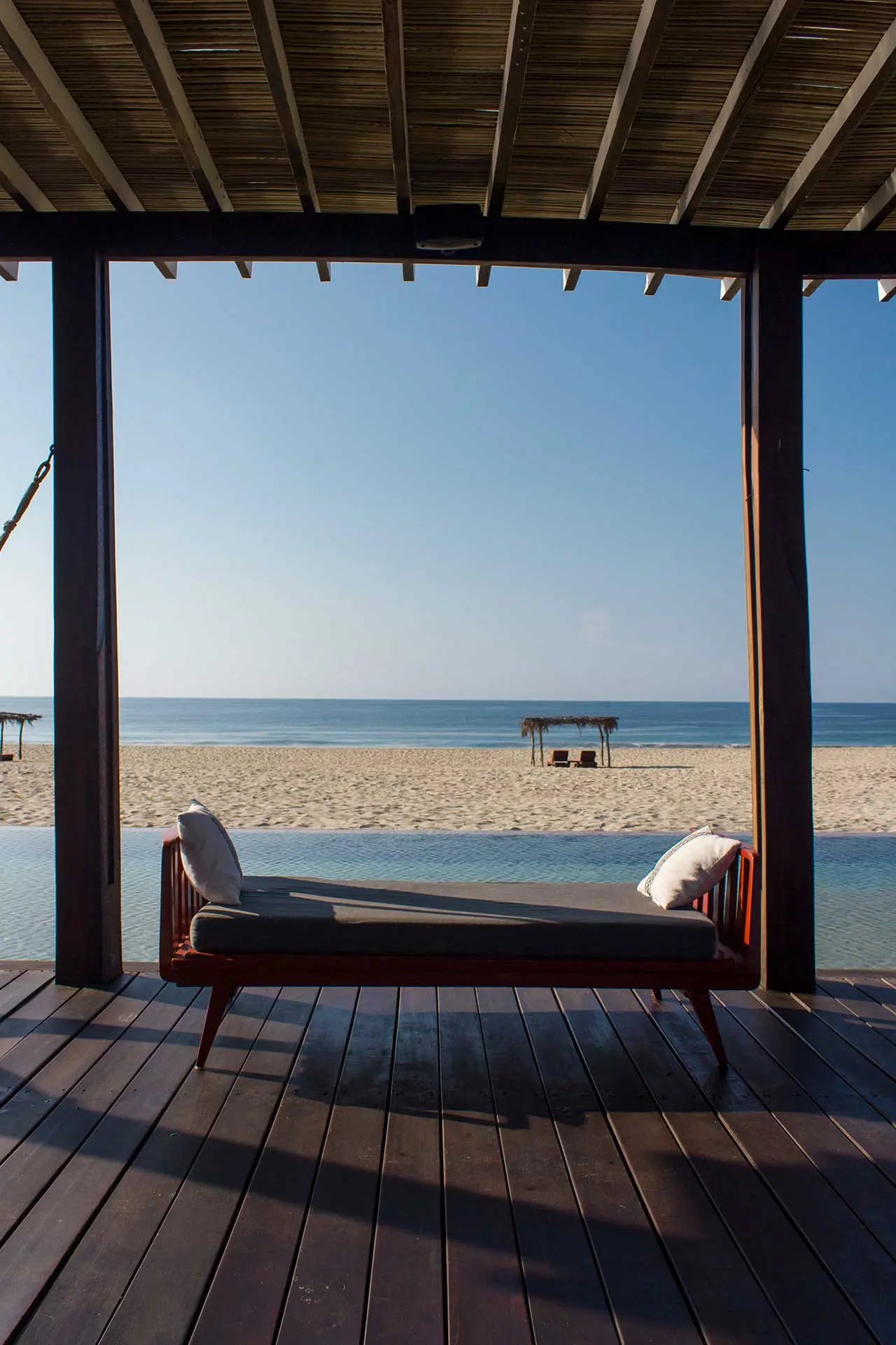 Designed by Federico Rivera Río, Hotel Escondido offers a modern twist on the Oaxacan beach hut. Enjoy minimalist luxury with colorful furniture, concrete bathrooms, and tropical wooden floors. Each bungalow features a private pool and palapa roofs, perfect for unwinding by the beach.